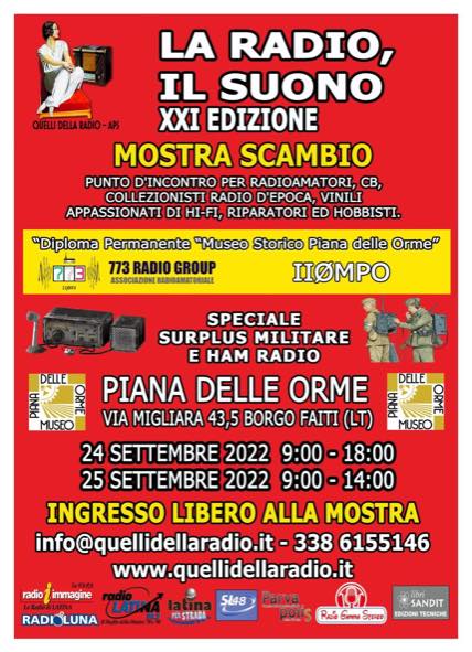 Tutto pronto per la XXI edizione di “La Radio, Il Suono” appuntamento fisso per gli amanti della radio, dell’hi-fi, dei dischi, dell’elettronica, delle radio d’epoca e tutto il mondo che gira intorno a questa passione. Il 24 e 25 settembre 2022 sarà l’occasione per festeggiare insieme la XXI edizione di questo evento unico sul territorio.