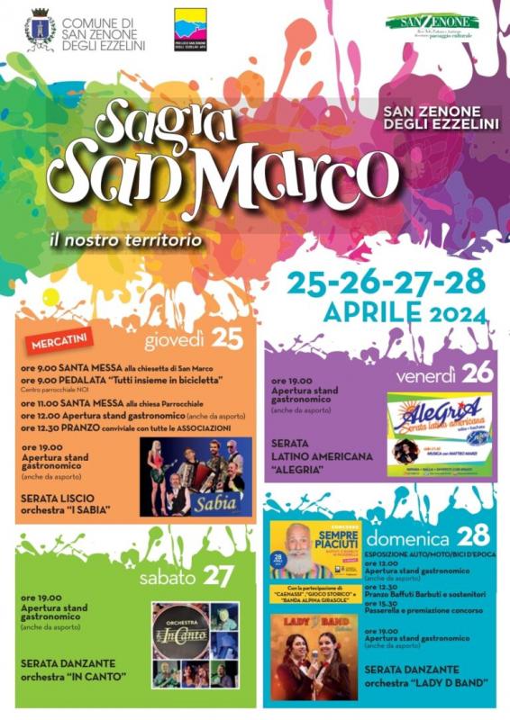 La Mostra Mercato e la Sagra di San Marco a San Zenone degli Ezzelini si svolge dal 25 al 28 aprile 2024.