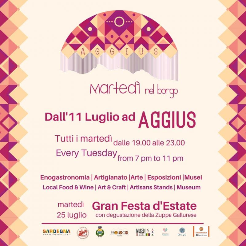 Lo fa con i "Martedì nel Borgo", un progetto nato nel 2019 che vede la collaborazione dell'Associazione Turistica Pro Loco Aggius, dell'amministrazione comunale e di tutte le attività di via Roma (la via centrale), ed è pensato principalmente per dare ulteriore spazio e visibilità agli artigiani locali e del territorio.