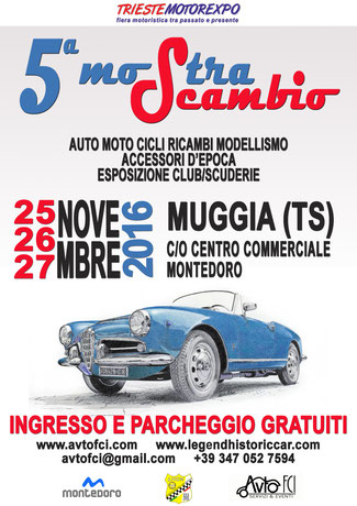 Dal 25 al 27 Novembre 2016a Muggia (TS) torna Trieste Motor Expo, 5^ Mostra Scambio Auto, Moto, Cicli, Ricambi e Modellismo.