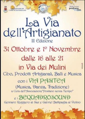 La Proloco Positano presenta la 3 edizione della via dell’artigianato, che si terrà il prossimo 31 ottobre e 1 novembre dalle 16:00 alle 21:00 in via dei Mulini a Positano.