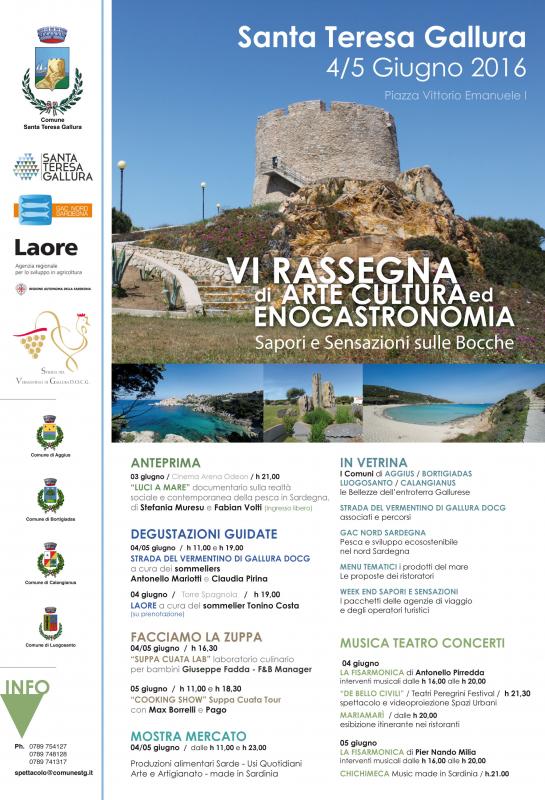 Il 04 e il 05 Giugno si terrà a Santa Teresa Gallura la sesta rassegna di arte, cultura ed enogastronomia "Sapori e Sensazioni sulle Bocche".