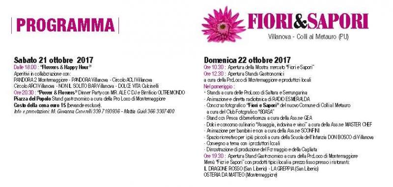 Domenica 22 ottobre alle ore 10.30 in Piazza del Popolo nella frazione di Villanova del comune di Colli al Metauro, si inaugurerà l’11° Edizione di “Fiori & Sapori” Mostra Mercato del Crisantemo e dei prodotti enogastronomici locali.