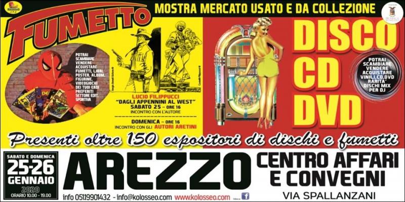 Giunge alla 22a Edizione uno dei più grandi e apprezzati appuntamenti del centro italia per il COLLEZIONISMO MUSICALE E FUMETTISTICO, con oltre 150 espositori da tutta Italia; allestita nel grande padiglione del Centro Affari di Arezzo, in Via Spallanzani, la mostra mercato è divenuta un appuntamento immancabile per gli appassionati e i moltissimi visitatori... NON MANCATE! Orario continuato Sabato 25 e Domenica 26 Gennaio 2020 dalle ore 10.00 alle ore 19.00