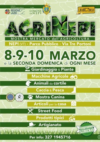 A Nepi in provincia di Viterbo si svolge nei giorni 08, 09, 10 Marzo 2019 (e seconda domenica di ogni mese) la Mostra Mercato dell'Agricoltura - Agrinepi 2019.