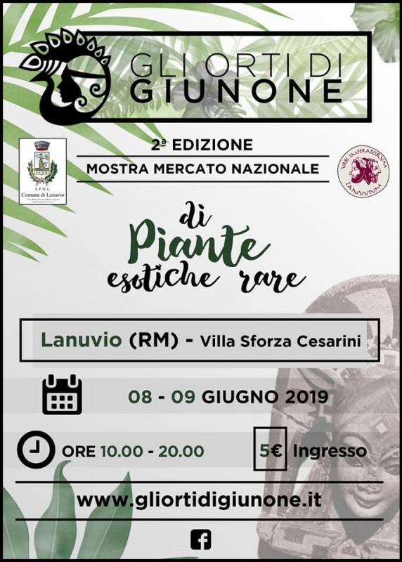 A Lanuvio in provincia di Roma si svolge nei giorni 08, 09 Giugno 2019 la seconda edizione de Gli Orti di Giunone - Mostra Mercato Nazionale di piante esotiche rare.