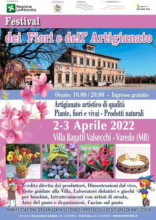 Il Festival dei Fiori e dell’Artigianato è patrocinato da Regione Lombardia e Comune di Varedo, promosso da Associazione culturale e artistica Iperbole e Fondazione Versiera 1718 ed organizzato in collaborazione con Eventi doc di Myriam Vallegra e Comune di Varedo.