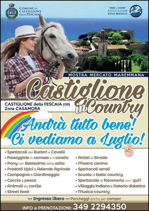 Finalmente anche a Castiglione della Pescaia, approda l'evento Country che questa volta prende due settori in particolare il Country inteso come West ed il Country come campagna,quindi il pubblico potra' trovare sia il villaggio indiano musiche country e balli country anche tante aziende agricole,e prodotti tipici di varie regioni italiani,prodotti a km O e tantissimi accessori in pelle cuoio.