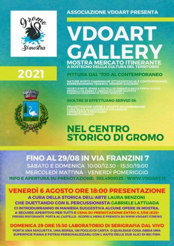 VDOARTGALLERY è una mostra mercato itinerante che apre per la prima volta al pubblico nell’ambito della rassegna GROMO SI MOSTRA 2021, iniziativa quest’ultima che offre ai visitatori una serie di esposizioni diffuse nell’antico borgo medievale.