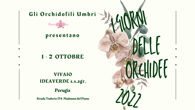 Il gruppo Orchidofili Umbri è lieto di annunciare che anche quest’anno avrà luogo la mostra-mercato “I Giorni delle Orchidee”, in programma a Perugia presso il Vivaio Ideaverde dall’1 al 2 ottobre 2022.