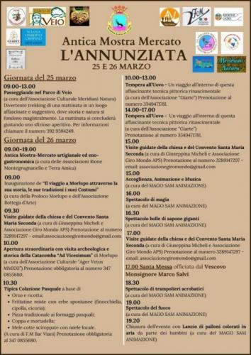 L'Antica Mostra Mercato l'Annunziata si svolgerà Sabato 25 e Domenica 26 Marzo a Morlupo, presso il Convento di Santa Maria Seconda, in via Fra’ Carlo da Sezze.