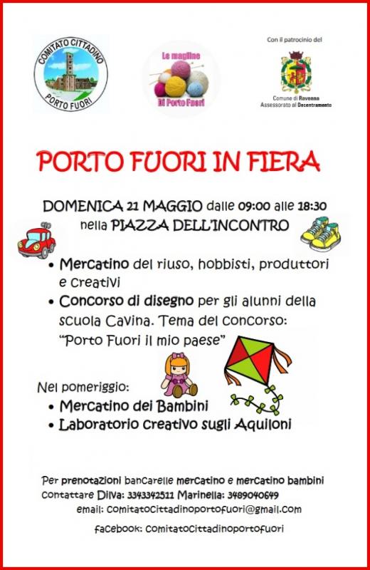 Il Comitato Cittadino di Porto Fuori, vi invita Domenica 21 Maggio 2023, dalle ore 09.00 alle ore 18.30, presso la Piazza dell'Incontro di Ravenna, a "Porto Fuori in Fiera".