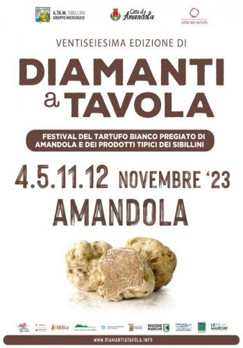 E' giunta alla ventiseiesima edizione la manifestazione Diamanti a Tavola, Festival del Tartufo Bianco Pregiato dei Sibillini che promuove e valorizza il più illustre frutto dei boschi di Amandola e dell’entroterra Fermano.