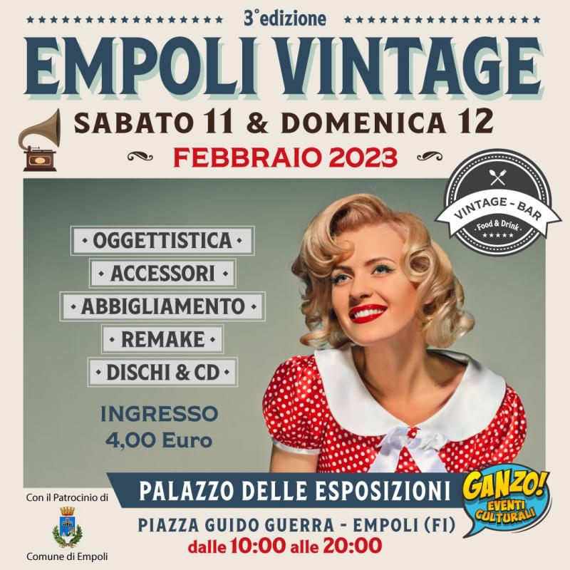 Torna ad Empoli, per la sua terza edizione, Empoli Vintage, Sabato 11 e Domenica 12 Febbraio 2023 presso il Palazzo delle Esposizioni di Empoli in Piazza Guido Guerra, dalle ore 10:00 alle ore 20:00 organizzata dall'Associazione Ganzo! Eventi Culturali con il patrocinio del Comune di Empoli .