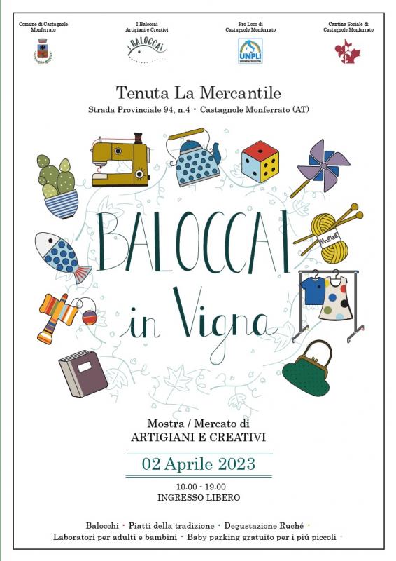 Baloccai in Vigna, la mostra mercato dedicata ad artigiani, artisti e creativi (OPI e hobbisti) si terrà Domenica 03 Settembre 2023 presso la Tenuta La Mercantile in Castagnole Monferrato (AT) con il patrocinio del Comune di Castagnole Monferrato, della Cantina Sociale di Castagnole Monferrato e della Pro-loco locale.