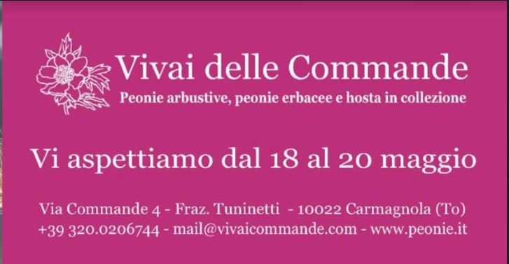 “Peonie in Fiore” si terrà da sabato 18 maggio a lunedì 20 maggio, dalle ore 10 alle 19, con ingresso gratuito.