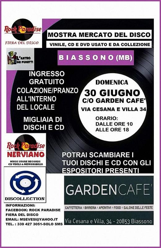 Visto la partecipazione di pubblico e l’interesse dimostrato nella precedenti edizioni, Domenica 30 GIUGNO torniamo a BIASSONO presso il locale GARDEN CAFE’, VIA CESANA E VILLA, 34 per la Mostra del Vinile e Cd, per HOBBISTI. Sarà inoltre presente uno stand di fumetti a cura de ”L’ANTRO DEI FUMETTI” di Biassono.