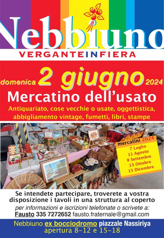 Domenica 2 Giugno a Nebbiuno, secondo Mercatino 2024 dell'usato e del riuso.