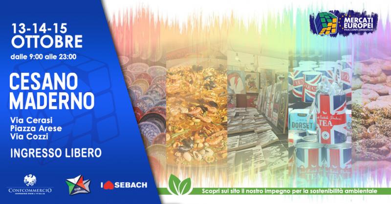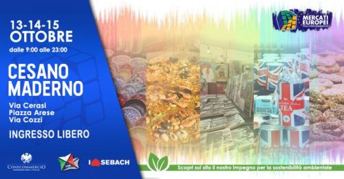 Vi aspettiamo a Cesano Maderno presso Piazza Arese, Via Cerati, Via Milano e Via Cozzi dal 13 al 15 Ottobre per il consueto appuntamento con il Mercato Europeo!