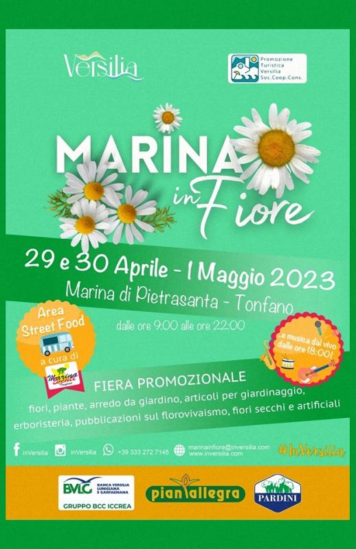 Una fiera promozionale dedicata al giardinaggio, ai fiori, agli arredi da esterno e ad articoli di erboristeria con più di 60 espositori provenienti da tutta Italia e accompagnata da eventi gastronomici, mostre fotografiche e tanta musica: è l'edizione 2023 di “Marina In Fiore”, il tradizionale appuntamento che segna l'inizio della bella stagione a Pietrasanta e torna a colorare il cuore di Tonfano da Sabato 29 Aprile a Lunedì Primo Maggio.