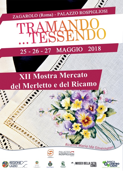 L’Associazione di Promozione Sociale Sinergie, in collaborazione con l’Istituzione Palazzo Rospigliosi ed il Museo del Giocattolo e con il patrocinio del Comune di Zagarolo, organizza all’interno delle sale di Palazzo Rospigliosi di Zagarolo (RM) la XII edizione di “Tramando...Tessendo”, Mostra Mercato internazionale del Merletto e del Ricamo, per i giorni 25/26/27 maggio 2018.