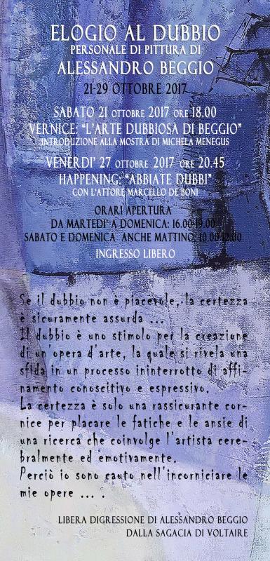 Abbiamo il piacere di segnalare l’esposizione personale “Elogio al Dubbio” della pittore vicentino Alessandro Beggio