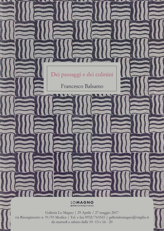 Sabato 29 aprile 2017 alle ore 19 sarà inaugurata alla Galleria Lo Magno arte contemporanea di Modica la mostra “Dei passaggi e dei culmini” di Francesco Balsamo.