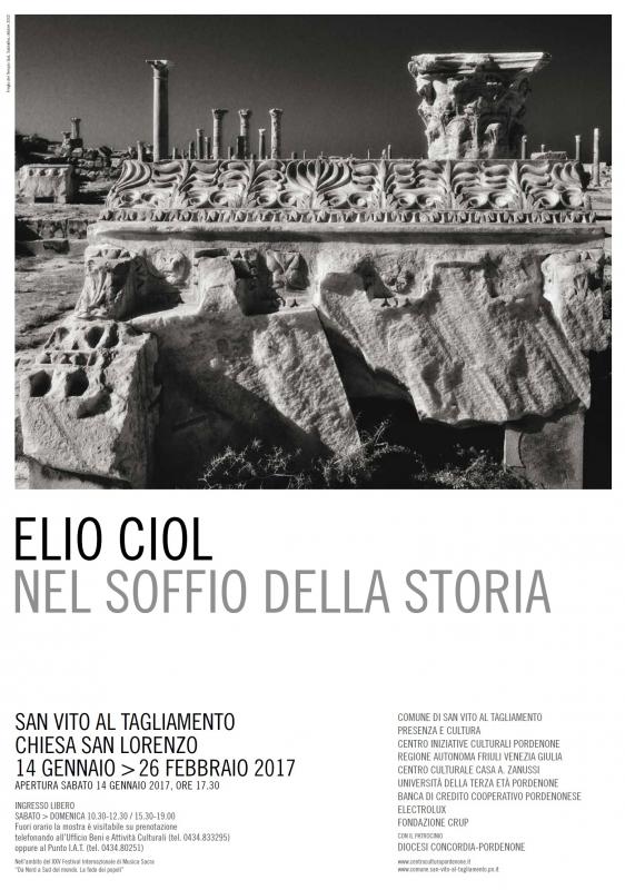 S. VITO AL TAGLIAMENTO – Apre sabato 14 gennaio alle 17.30 nella Chiesa San Lorenzo di San Vito al Tagliamento, “Nel Soffio Della Storia”, la mostra di Elio Ciol dedicata agli scatti realizzati in terra libica, cinquanta fotografie realizzate nel 2002. All’inaugurazione saranno presenti l’autore Elio Ciol, il sindaco di San Vito al Tagliamento Antonio Di Bisceglie, il curatore Giancarlo Pauletto e la coordinatrice Maria Francesca Vassallo. La mostra è ideata e promossa dal CICP – Centro Iniziative Culturali di Pordenone, in sinergia con il Comune di S. Vito al Tagliamento e con la Regione autonoma Friuli Venezia Giulia. Dopo la mostra "Il canto della pietra. Armenia 2005", da poco chiusa all'Abbazia di Sesto al Reghena, Ciol ci accompagna in luoghi stretti fra il mare e il deserto, alla scoperta delle tracce maestose di civiltà oggi sopraffatte da emigrazioni forzate e nuove forme di schiavitù. «Visioni – spiega la presidente CICP Maria Francesca Vassallo, coordinatrice dell’evento - che inducono oggi a pensare e costruire nuove forme di accoglienza e di integrazione». La mostra sarà visitabile fino al 26 febbraio 2017. Orari: sabato e domenica 10.30 -12.30/15.30-19.00. Fuori orario su prenotazione telefonando all’Ufficio Beni e Attività Culturali (tel. 0434.833295) oppure al Punto I.A.T. (tel. 0434.80251). Ingresso libero.