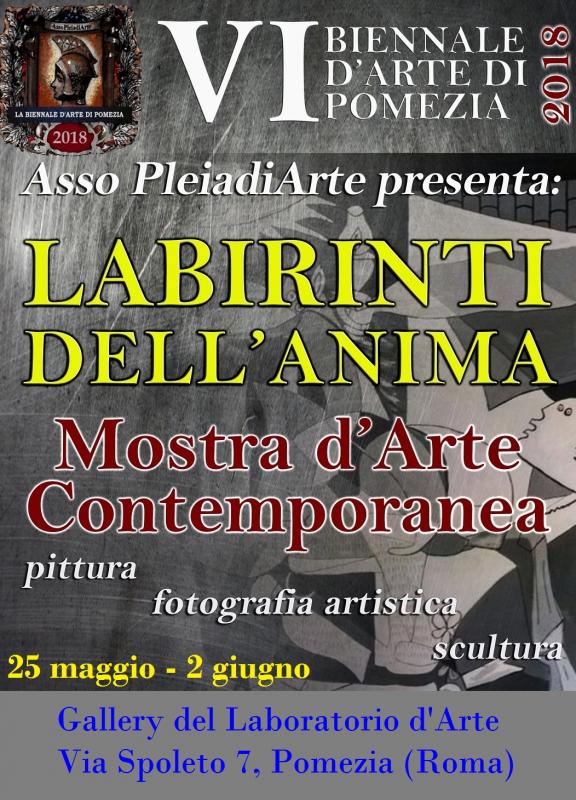 Il Regolamento è consultabile su: www.pleiadiarte.blogspot.com. Il tema di questa VI edizione è Labirinti dell’anima. L'anima: dimensione dell'essere umano in cui convergono i molteplici stati emotivi e razionali che danno impulso alla vita individuale e della collettività sociale. La realtà dell'universo interiore ed esteriore fornisce spunti di riflessione estetica per l'elaborazione di opere d'arte in cui esprimere la sensibilità creativa. L'esperienza quotidiana di ogni individuo è un percorso continuo in cui si susseguono momenti di azione, relazione, immaginazione, contemplazione, sogno, sofferenza, gioia, rabbia, delusione, malinconia, ansia, disorientamento del vivere, speranza, attesa... E' compito dell'Artista sublimare tali momenti, estrapolandoli dal labirinto di cui l'anima è luogo. La manifestazione, istituita e voluta dal M° Paolo Sommaripa, è organizzata dall’associazione Pleiadi Arte e Cultura Pomezia.