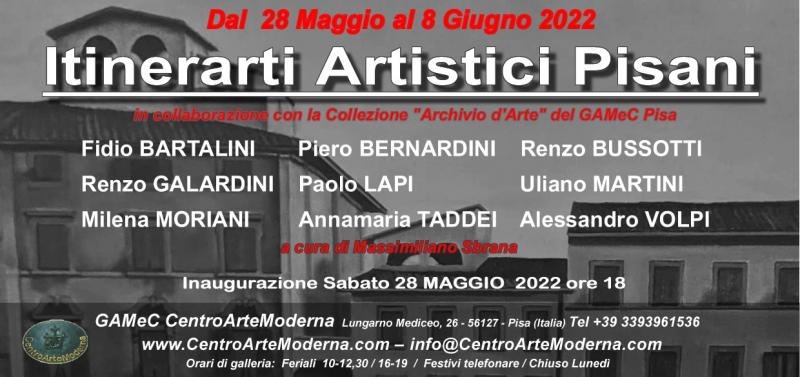 Si inaugura Sabato 28 Maggio 2002 alle 18, presso gli storici spazi del GAMeC CentroArteModerna di Pisa (Lungarno Mediceo n.26), curata e ordinata da Massimiliano Sbrana la mostra "Itinerari Artistici Pisani : Fidio Bartalini, Piero Bernardini, Renzo Bussotti, Renzo Galardini, Paolo Lapi, Uliano Martini, Milena Moriani, Annamaria M. Taddei, Alessandro Volpi"