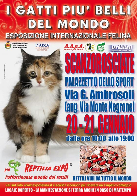 I GATTI PIU' BELLI DEL MONDO si possono ammirare all'Esposizione Internazionale Felina che si svolge a Scanzorosciate (BG), presso il Palazzetto dello Sport di Via G. Ambrosoli (Località Negrone), nei giorni 20 e 21 gennaio2018