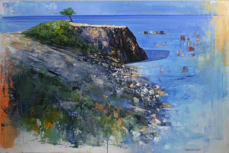 Le opere scelte per l'esposizione alla Fondazione Banca del Monte di Lucca sono divise in cinque sezioni: alberi e vegetazione, mare, nature morte, figure e temi vari per riuscire a presentare uno spaccato significativo di un'artista che ha operato per oltre 50 anni. Maurizio Bini infatti è nato nel'40 a Livorno dove tutt'oggi vive e lavora, ma ha intessuto un grande rapporto con la nostra città, dove ha studiato prima all’Istituto d’Arte di Lucca, e poi insegnato al Liceo Artistico, titolare di cattedra di discipline pittoriche. Dai primi anni Sessanta partecipa a diverse mostre e concorsi, venendo premiato più volte. Dal 1967 fa parte della Galleria Il Minotauro di Livorno, attraverso la quale conosce e frequenta molti artisti. Coltiva l’interesse per una pittura d’immagine che si fa carico di situazioni e intenzioni critiche ed esistenziali.