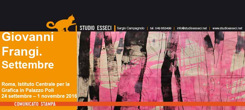 L'Istituto centrale per la grafica presenta, nella sede di Palazzo Poli, l'opera in carta di Giovanni Frangi, progettata per la sede, con la curatela di Giorgio Verzotti. Lo fa con un progetto che ha tutto il sapore di una sfida: lavorare sul supporto che in questo luogo ha uno dei suoi "templi", la carta. Frangi infatti ha cercato di saggiarne in modo imprevedibile ed estremo tutte le potenzialità. Per realizzare questo progetto ha puntato su due carte dalle grandi qualità come la Hahnemuhle bianca e la Fabriano nera, alle quali ha aggiunto un outsider: un cartone di grandi dimensioni prodotto da Cartiere dell'Adda. Ciascun tipo di carta poi comporta anche un rapporto con grane profondamente differenti, che diventano fattore attivo nel lavoro di Frangi.
