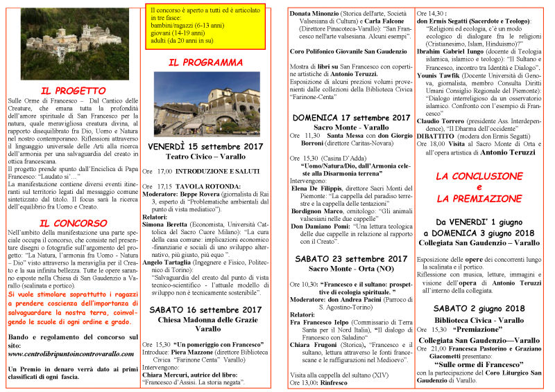 Sabato 16 Settembre 2017 Varallo - Santa Maria delle Grazie h. 15.00 conferenza con Legature d'arte Graffiando Cielo e Terra per Sulle Orme di Francescodell'artista Antonio Teruzzi