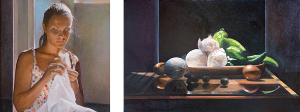 Questa accorata serenità del suo sentimento del mondo, pacato e trasfiguratore, si incanta lievemente nelle strutture stesse della visione compositiva, nel silenzio felpato del vaso di fiori immerso nella luce, nell’incarnato dei ritratti trepidi di nostalgia e d’affetto, nella frutta che garbatamente si mette in posa a richiamare sfioramenti di sapori e memorie, passati profumi...