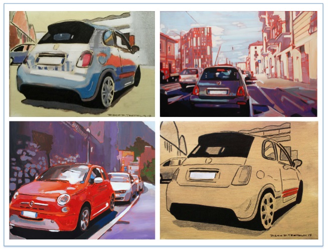 Proprio da un’interpretazione creativa di questo intramontabile modello parte la rassegna personale di Diego D. Testolin curata da Roberta Di Chiara e allestita dal 13 ottobre al 12 novembre 2017 presso la Mirafiori Galerie di Torino. “Ho sempre guardato alla pop-art e ai grandi maestri americani indagando i temi della quotidianità, innalzandoli a simboli del mio tempo - spiega il pittore - La mostra Cinque100 nasce da qui: è un omaggio all’icona che ha motorizzato gli italiani rendendo onore al suo stile e al design che l’hanno resa celebre nel mondo”.
