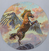 Una pittura colta ed efficace - conclude Accerboni - realizzata a olio su tela o su tavola e ricca di velature, che ci rimanda indietro nel tempo e sa farci sognare, scivolando infine nella purezza del mito di Apollo, che simbolizza il sole, di S. Giorgio che sconfigge il drago, cioè del bene che prevale sul male, e di Pegaso, il più famoso dei cavalli alati, nato, secondo la mitologia greca, dal terreno bagnato del sangue di Medusa, allorquando Perseo le tagliò il collo.