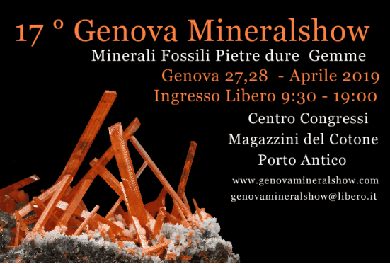 Sabato 27 e domenica 28 aprile 2019 si svolge il Genova Mineral Show al Centro Congressi dei Magazzini Del Cotone.