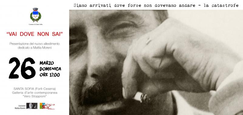 Domenica 26 marzo, alle ore 17.00, presso la Galleria d'arte contemporanea “Vero Stoppioni” di Santa Sofia (Forlì-Cesena), il Comune di Santa Sofia in collaborazione con l'Associazione Mattia Moreni ha organizzato la presentazione al pubblico del nuovo allestimento temporaneo dedicato a Mattia Moreni, in cui le opere della collezione di Santa Sofia “dialogano” con quattro dipinti di grande forza espressiva di Moreni stesso, databili fra il 1974 il 1998, concessi in comodato gratuito dalla figlia dell'artista Maria Francesca Moreni. Nel nuovo allestimento anche immagini fotografiche, appartati documentari e altre opere pittoriche, fra cui un piccolo autoritratto a matita del 1940, prestate per l'occasione dalla famiglia Moreni.