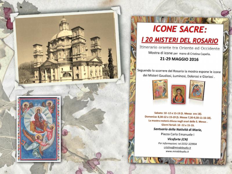 ICONE SACRE:I 20 MISTERI DEL ROSARIO.Itinerario orante tra Oriente ed Occidente.Mostra di icone per mano di Cristina Capella.21-29 MAGGIO 2016