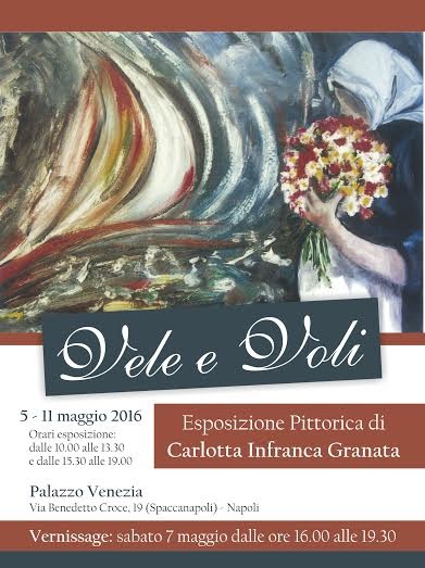 E' in programma nella sala espositiva delle Carrozze di Palazzo Venezia Napoli, la personale di pittura " Vele e Voli" di Carlotta Infranca Granata, la mostra avrà luogo dal 5 all' 11 Maggio.
