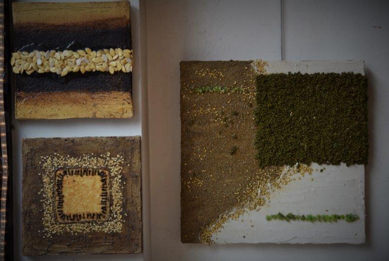 Licia Fusai espone le sue ultime creazioni realizzate con quegli ingredienti che di solito sono usati per preparare o insaporire le sue ricette di cucina: semi di girasole, sale dell’Himalaya nelle sue svariate sfumature, pepe rosa, verde, nero, bacche di cannella, vividi peperoncini.
