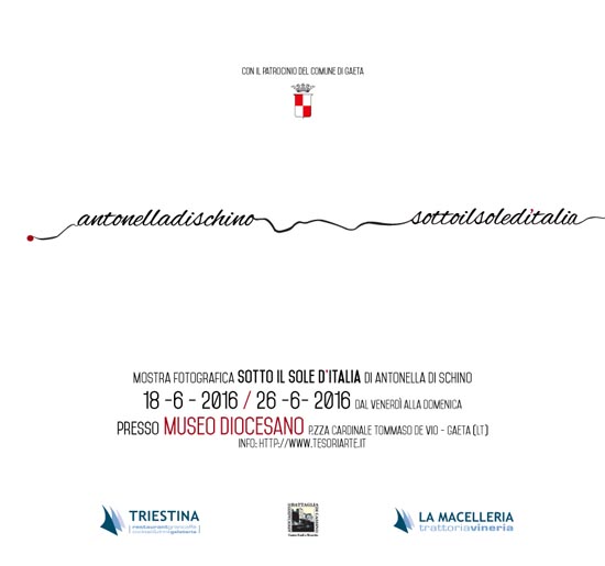 Sabato 18 giugno alle ore 17:00 presso il Museo diocesano di Gaeta (Piazza De Vio) si terrà l’inaugurazione della mostra fotografica “Sotto il sole d’Italia” a cura di Antonella Di Schino. La mostra rimarrà esposta al Museo diocesano fino a domenica 26 giugno.