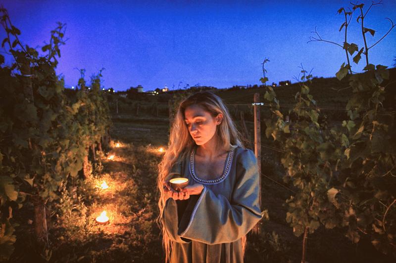 Suggestivi notturni, luci soffuse dal tramonto all’alba, atmosfere oniriche che si susseguono sullo sfondo delle colline e una figura femminile senza tempo a fare da fil rouge tra le 20 immagini a colori (dimensioni 30×40) con cui Farinetti interpreta i paesaggi del Monferrato i vigneti e che circondano La Torre di Castel Rocchero.