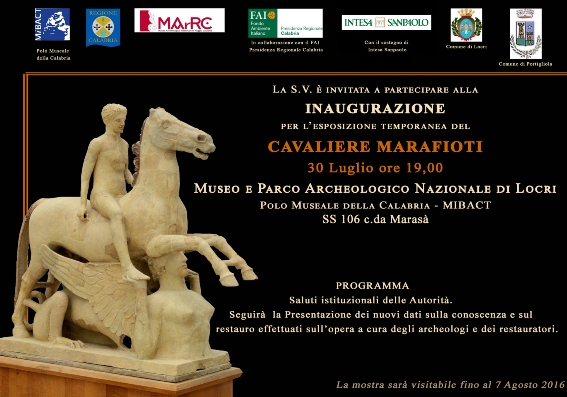 Dal 30 luglio al 7 agosto 2016, presso il Museo Archeologico Nazionale di Locri – Polo Museale della Calabria, si terrà l’esposizione temporanea del Gruppo del Cavaliere di Marafioti, opera in terracotta del V secolo a.C. rinvenuta in località Pirettina (Comune di Portigliola), alle spalle dell’antica città di Locri.