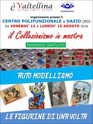 A Dazio dal 12 al 15 Agosto in esposizione il modellismo con numerose automobili e le figurine, partendo da alcuni pezzi di fine '800 fino ad arrivare a quelle dei giorni nostri. Questa sezione è divisa in serie: Topolino Elah, Liebig, Plasteco Mio, figurine dei calciatori. L'organizzazione è di E'Valtellina. La mostra si svolge all'interno del Centro Polifunzionale.