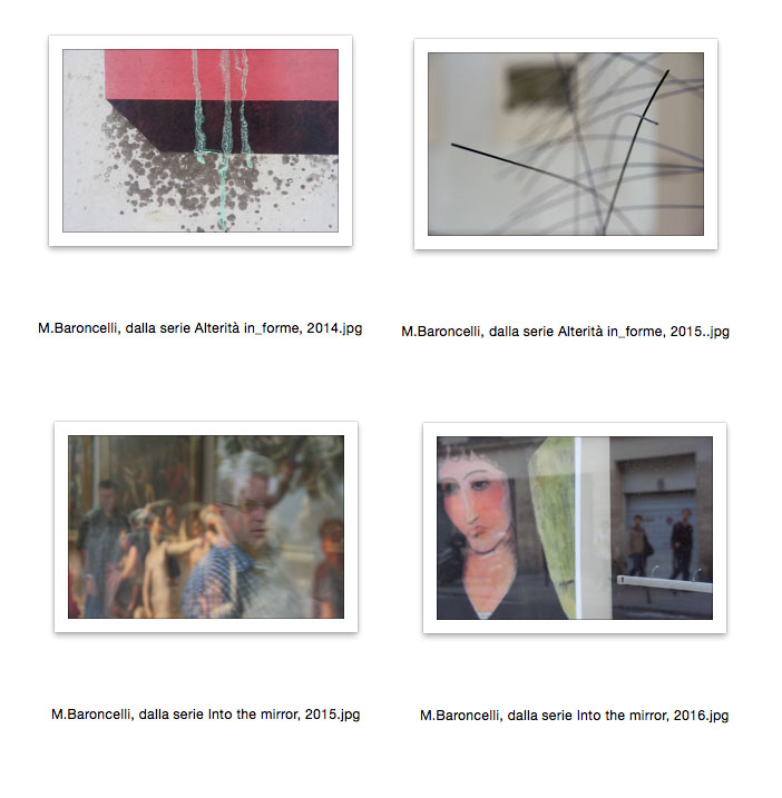 Nell’appuntamento del 5 settembre, saranno presentati i nuovi lavori (mai esposti prima) di Marco Baroncelli, fotografo e videoartista; risalgono all’ultimo triennio di lavoro (dal 2014 al 2016) e fanno parte delle serie Alterità in_forme e Into the mirror. Le stampe delle foto, insieme alla proiezione di alcuni filmati di videoarte, saranno visionabili fino all’8 settembre, a partire dalle ore 21.00; ogni sera sarà presente l’artista, che potrà accompagnare i visitatori alla scoperta di dettagli e fornire informazioni, come in un salotto d’arte.