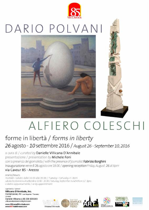 "Forme in libertà: Dario Polvani pittura & Alfiero Coleschi scultura" in mostra ad Arezzo dal 26 agosto al 10 settembre 2016" a Via Cavour 85.