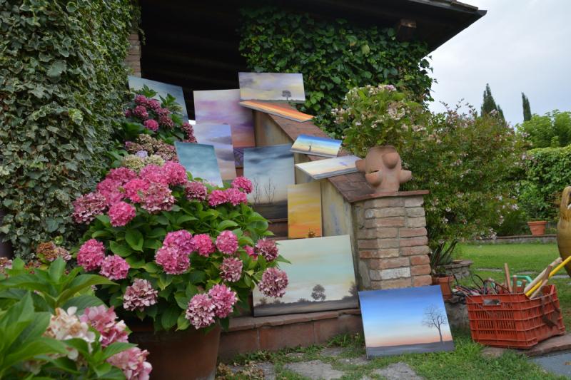 “Respiro – racconta la pittrice - è l’occasione per sperimentare un nuovo linguaggio creativo attraverso l’uso del colore, la dimensione del sogno, la mutevole armonia del cielo e il mistico silenzio della natura. Ero nella casetta di legno, il laboratorio che mi ha fatto il mio compagno Danilo, circondata da tele bianchissime - è così che racconta la nascita dell'ispirazione dei suoi quadri, Paola Musio -. È stata un'urgenza, una necessità impellente. Il cuore batteva veloce e il fiato era come sospeso, poi… i colori sono comparsi dentro e fuori di me, proprio come un respiro. Da qui il nome della personale”.