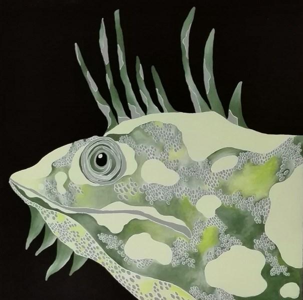 In mostra, una ventina di opere di medio formato e due tele di grandi dimensioni, tutte realizzate dal 2014 al 2016. Oltre ai paesaggi onirici e surreali, che emergono da fondi neri, anche alcuni camaleonti, ricorrenti nella produzione della pittrice, sinonimo di cambiamento e positivo adattamento alla società contemporanea.